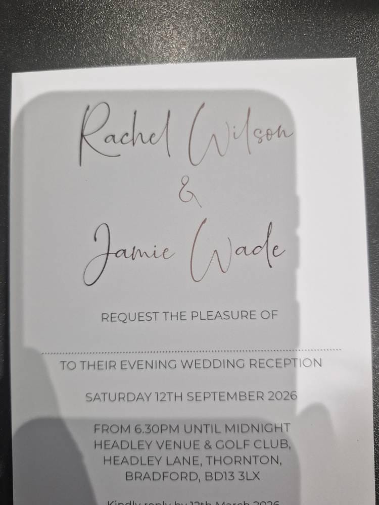 Lovely invitations, ordered over Christmas and they still came really quickly. I would recommend this seller.