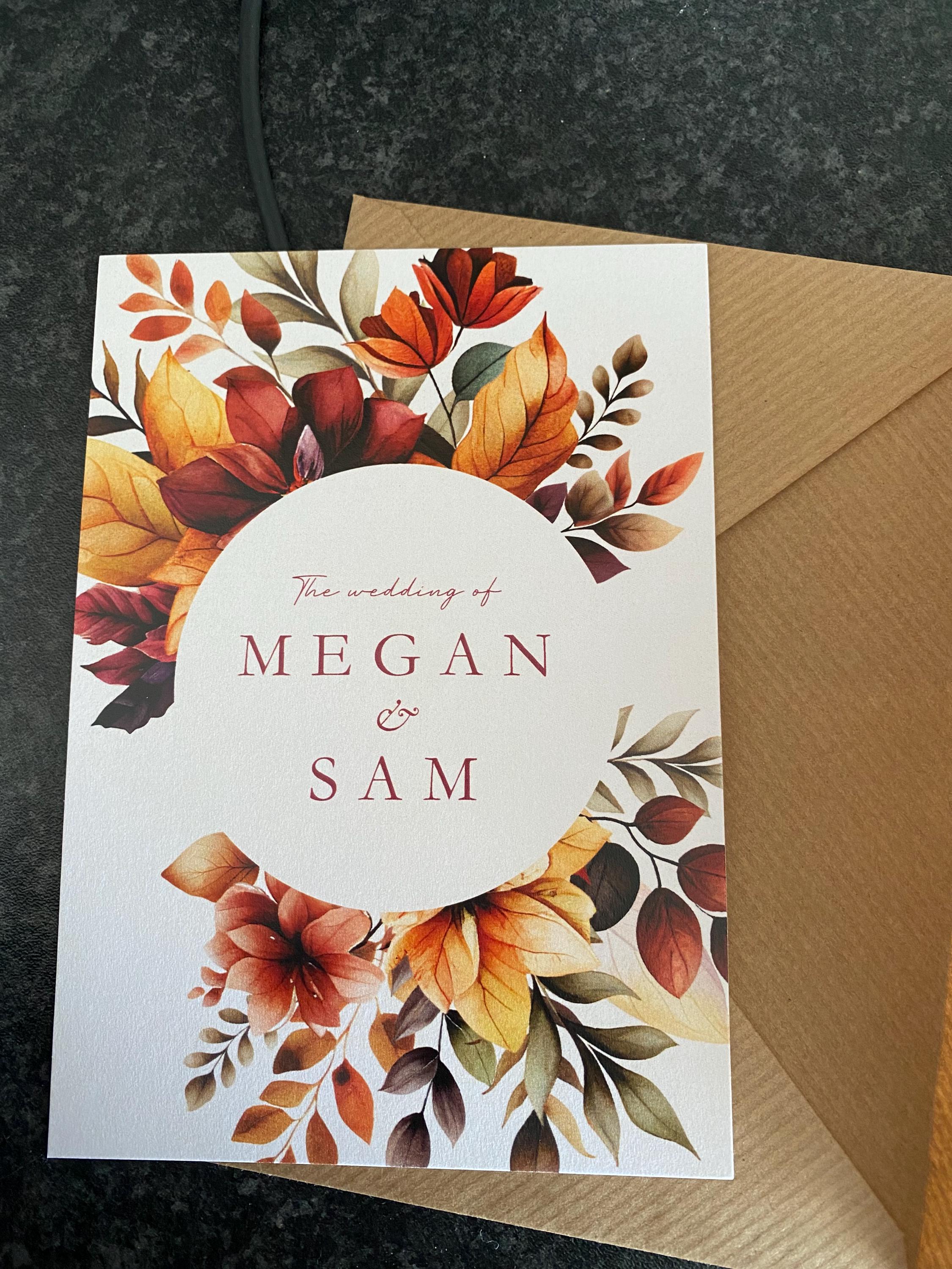 Beautiful invites, well crafted, quick communication and delivery. All guests have been very impressed by them and just perfect for our autumn wedding.