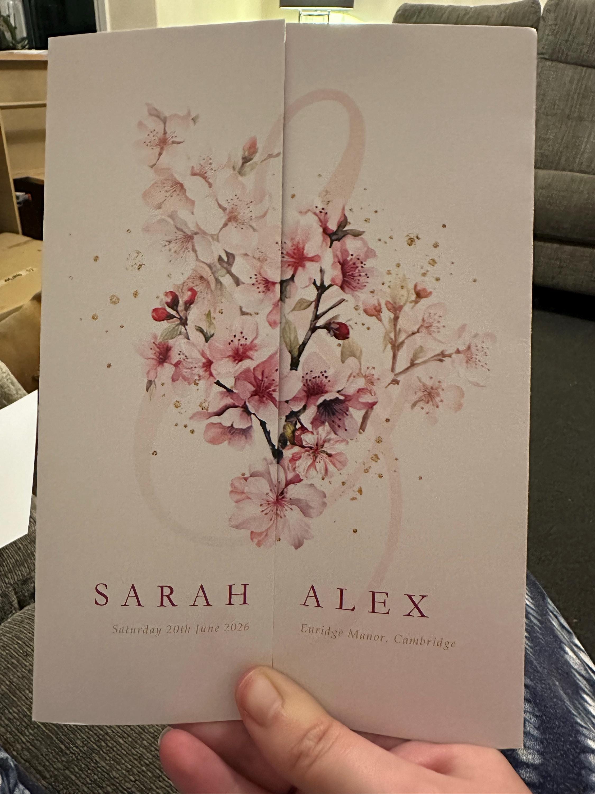 Optional extras like card upgrades, timeline icons, envelope printing and guest name printing can all be selected on the personalisation form we email after placing your order.