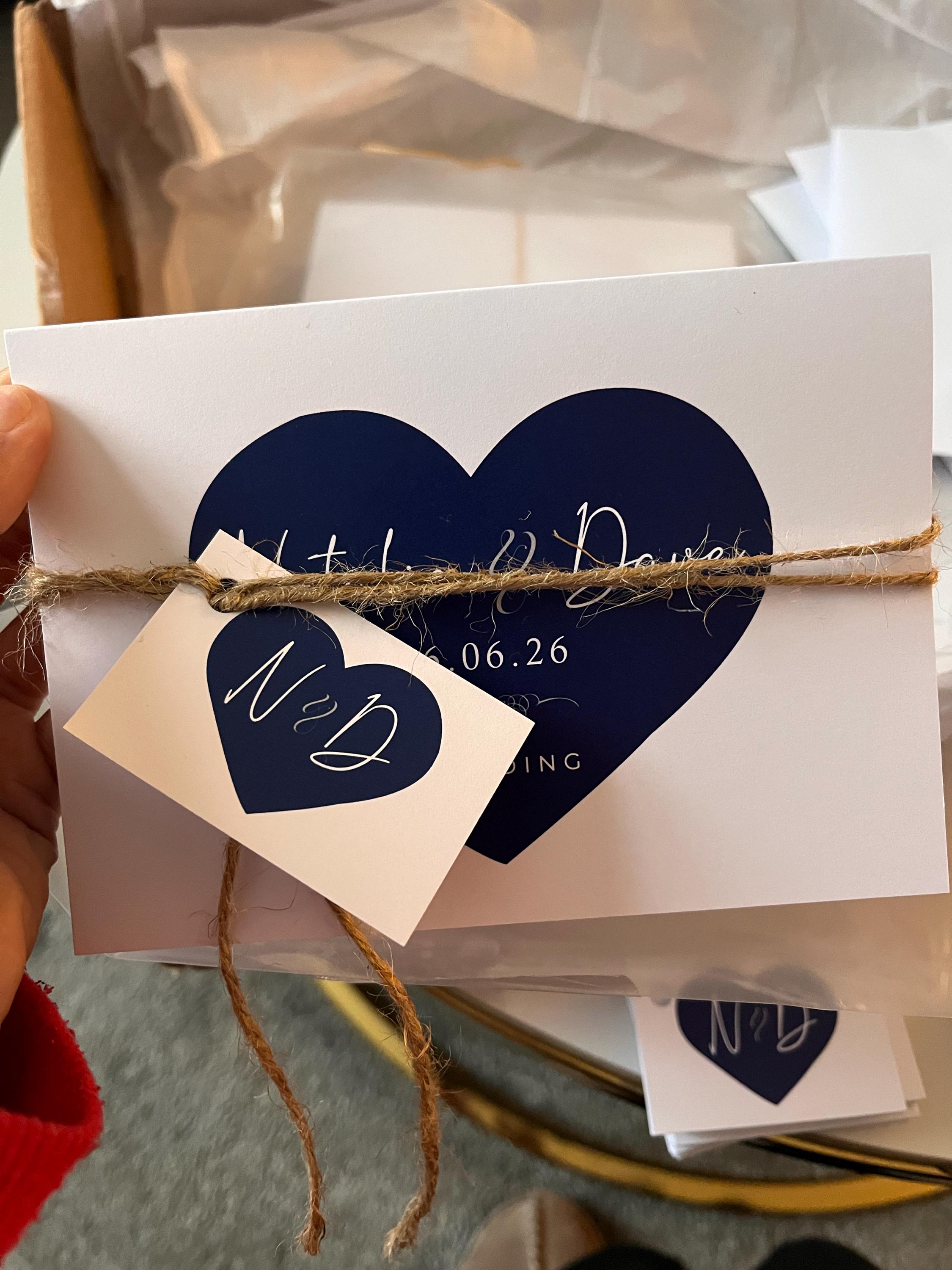Really happy with my wedding invitations. Excellent service and communication. I had to change something after seeing the proof and it was done quickly. My invitations then arrived within 2 days. Great quality…I have just ordered my evening invites as I was so happy.