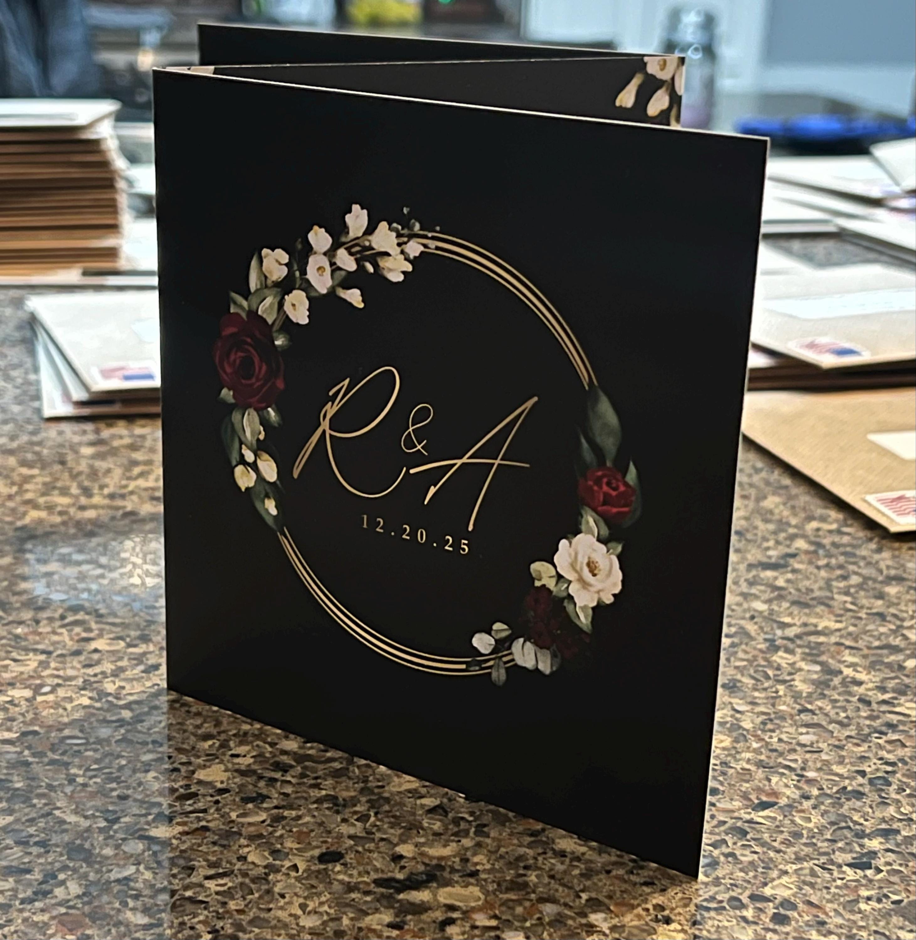 I received so many compliments on our invitations! They were beautiful. People also mentioned how convenient it was that everything was all in one trifold card as opposed to multiple different papers falling out of the envelope like you see with some traditional invitations. It was nice to not have to worry about forgetting to place any important papers in the envelope to each guest! The seller made the whole process of drafting the information, reviewing the proof, and making any changes very simple. They were also able to add the QR code for our website so that I didn’t have to include a separate card with the QR code in the envelope. I 100% recommend purchasing these invitations and working with this seller!